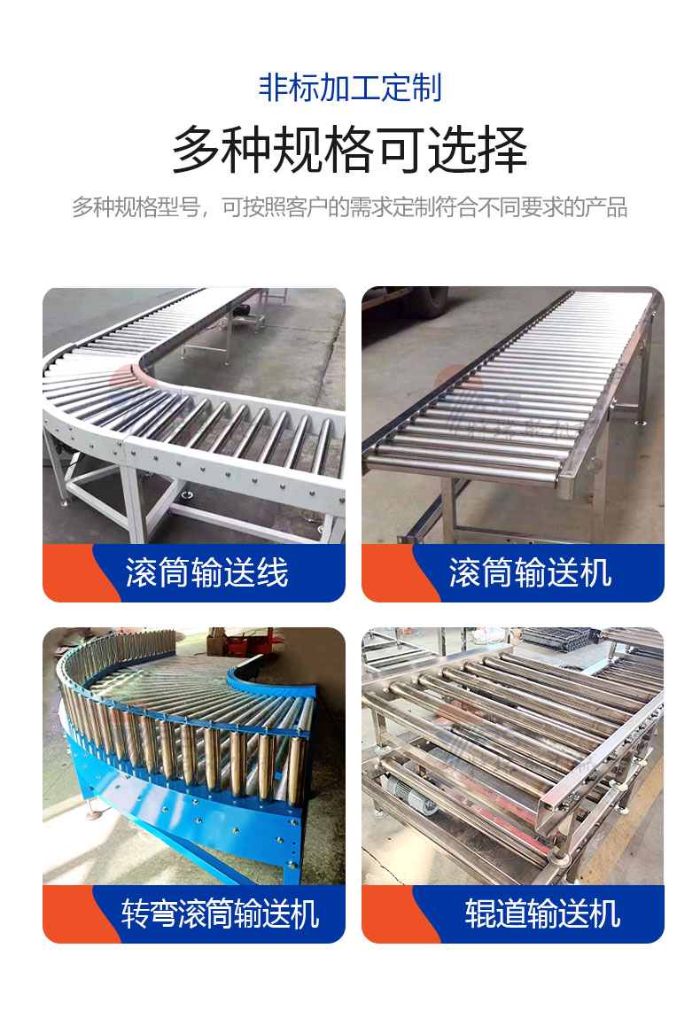 不同的使用環境需選用不同材質的滾筒:塑膠件在低溫環境下脆性大,不適宜長時間使用,所以低溫環境下需選擇全鋼制滾筒;包膠滾筒使用時會產生少量的粉塵,所以不可應用于無塵環境中;聚氨酯易吸附外界顏色,故不能用于輸送帶有印刷色的包裝箱和貨物;具有腐蝕性環境時需選用不銹鋼滾筒;被輸送物體會對滾筒造成較大磨損時,由于鍍鋅滾筒耐磨性不強、磨損后外觀不佳等原因盡量選用不銹鋼或鍍硬鉻滾筒;由于提速、爬坡等原因需要較大摩擦力時選用包膠滾筒,包膠滾筒能同時起到保護貨物地面、降低輸送噪音等作用。